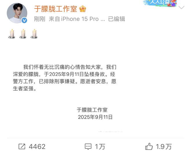 演员Yu Menglong已确认跌倒并死亡。 11日晚上,工作室发布了一个itu告,向只有37岁的Yu Menglong说再见。根据Studio Field的说法,很明显,Yu Menglong于2025年9月11日倒下。在警方调查后,发现人们怀疑被排除在外,预计生命将是强大的。工作室提供的itu告很短,没有透露他跌倒的原因。它使网民不满意,然后去评论部分找到了真相,认为事情并不是那么简单。在确认Yu Menglong的死亡之后,朋友们也在圈子里发表了同情。 Gan Wei是情感上的。他们两个一起发送了微信的消息,但他们没想到Yu Menglong会先离开。毫无疑问,Wei忘记了她第一次见到Yu Menglong的那一刻。她穿着一件纯净的白色T恤,安静而优雅,尤其是美丽而没有战斗或战斗。刘·鲁林(Liu Ruilin)说,由于“桃子开花”和Yu Menglong,即使过去十年来他没有太多联系,每次他看到Yu Menglong时,他就像春天的微风在脸上吹来。他非常温柔和善良。王·齐安(Wang Qiang)还谈到了他的同情,说他真的很难过。如此善良的人笑了,两天前开玩笑,一旦他这么说,他就离开了。 Yu Menglong是一个善良而安静的大男孩。她一直都是先生。当他们离线遇到他时,球迷们还会给他一个很高的评论。据报道,粉丝遇到了Yu Menglong四次,二十次戏剧和两个机场。他实际上回应了粉丝的要求,因为它更酷,并提醒所有人保持温暖。如果Yu Menglong的迹象,他将主动采取行动来帮助所有人签名,并说谢谢。他确实是一个非常温柔和真诚的人。一位喜欢Yu Menglong的老粉丝10年发布了一篇文章,说他不是一个疯狂的人,他在追逐星星,不想跟随娱乐活动Industry。 However, after watching "The Crown Princess's promotion, she followed Yu Menglong repeatedly and temporarily. He started making money in June and wanted to meet Yu Menglong offline. Now you leave and go to heaven like your mother, and you really can't stand it. Fans' messages are touching. Although they are not very strongAs far as they want, they still can't accept that Yu Menglong died at a young age. In the hearts of fans, Yu Menglong is a handsome young男人,他在阳光明媚的外观上保持着纯洁的心,对圆形的同事也有很高的看法,他们几乎没有负面的丑闻五到六个朋友在当晚聚集在朋友家第十。直到凌晨2点,Yu Menglong才回到家睡觉并关上门。凌晨6点,我的朋友没有看到Yu Menglong Thatit出来,所以他在走路。但是当他摔倒时,他看到Yu Menglong落下死亡,邻居帮助报警。随着事件的事件,越来越多的网民说话,其中一些是真实的,有些是假的,但网民仍然期望会发生奇迹。然而,到了晚上,工作室的itu告释放了所有人的希望。可悲的是,他像37岁那年一样把它留下来。从建筑物倒下并垂死的Yu Menglong的真相尚未公开。我希望该官员能听到网民的声音,并给公众一个准确的消息。